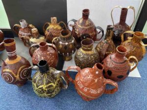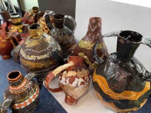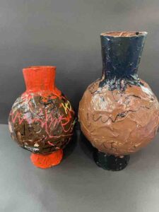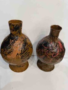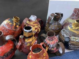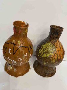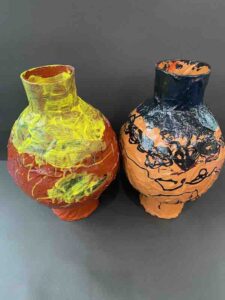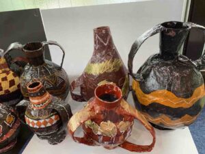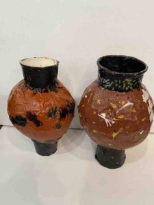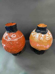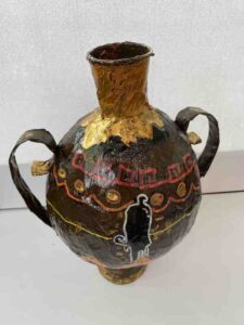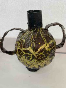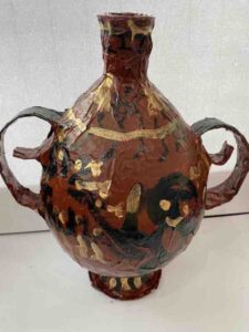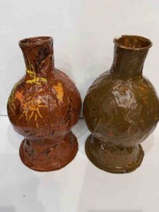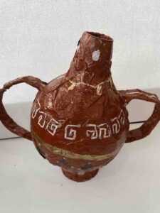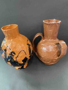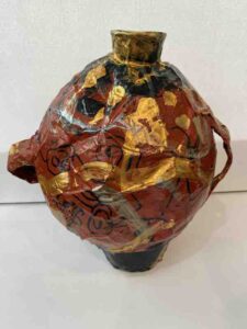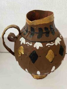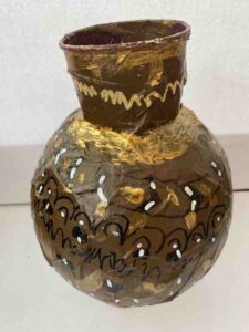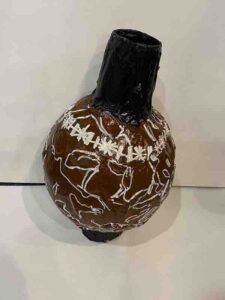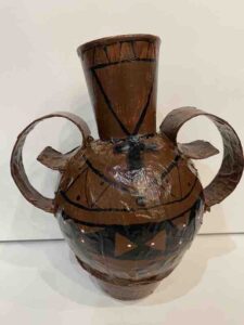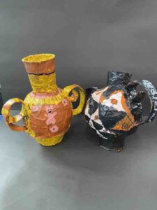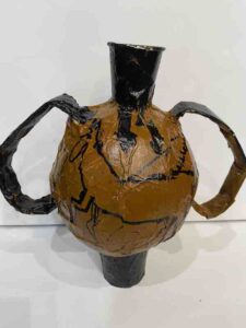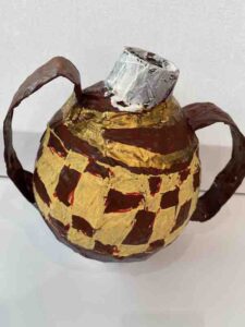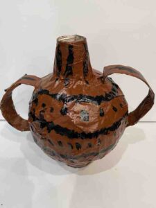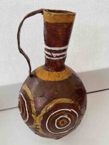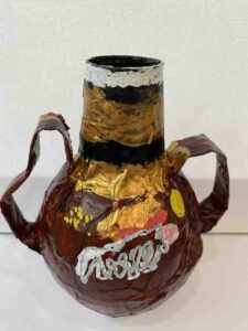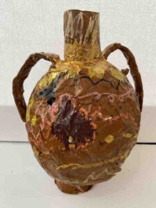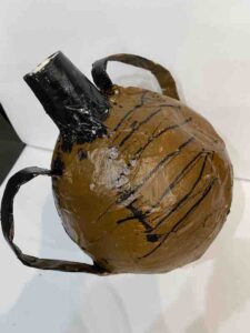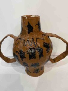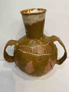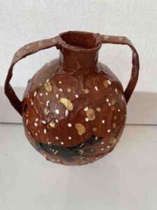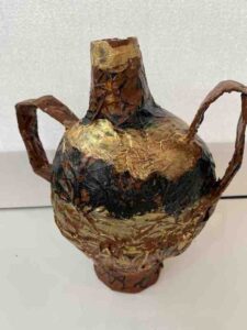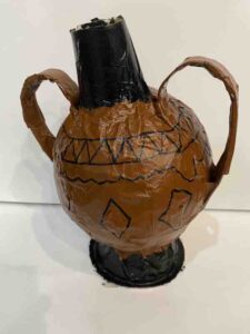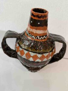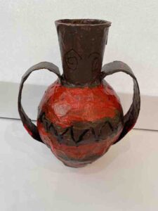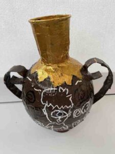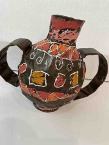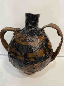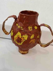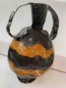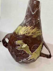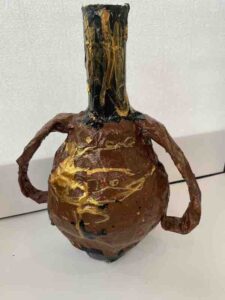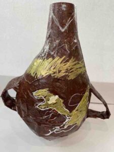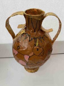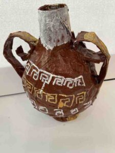 By 松島良子2022年10月22日Art Gallery古代ギリシャ壺古代ギリシャ紀元前500年ごろの陶器の壺をペーパーマシェで製作しました。古代ギリシャの壺に描かれている幾何学模様を考察し、ギリシャ神話に出てくる神様や怪物の名前を英語で勉強しました。