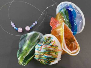 By 松島良子2022年7月6日Art GalleryDale Chihulyデイル チフーリ アメリカ人ガラス彫刻家の作品からプラスチックカップに油性絵の具で絵を描き、オーブントースターで焼きました。熱で溶けたプラスチックカップがガラス細工のようです。