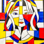 水平線と垂直の直線のみによって分割された画面に赤・青・黄の3原色を用いるヒストイックな原則を貫いた一連の作品群がよく知られている。