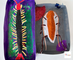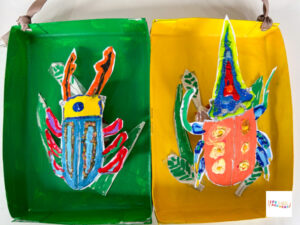 By Shawn2024年10月24日Art Gallery虫の標本:まずは箱作りから。方眼画用紙で箱の作り方を学び、好きな色に塗ります。箱のサイズに合わせて厚紙に好きな虫を描き、アクリルペイント、ポスカ、グリターで装飾、箱にも木や花など虫たちの棲み家を装飾できて、虫たちの楽しい歌声が聴こえてきそうです。 Art Course